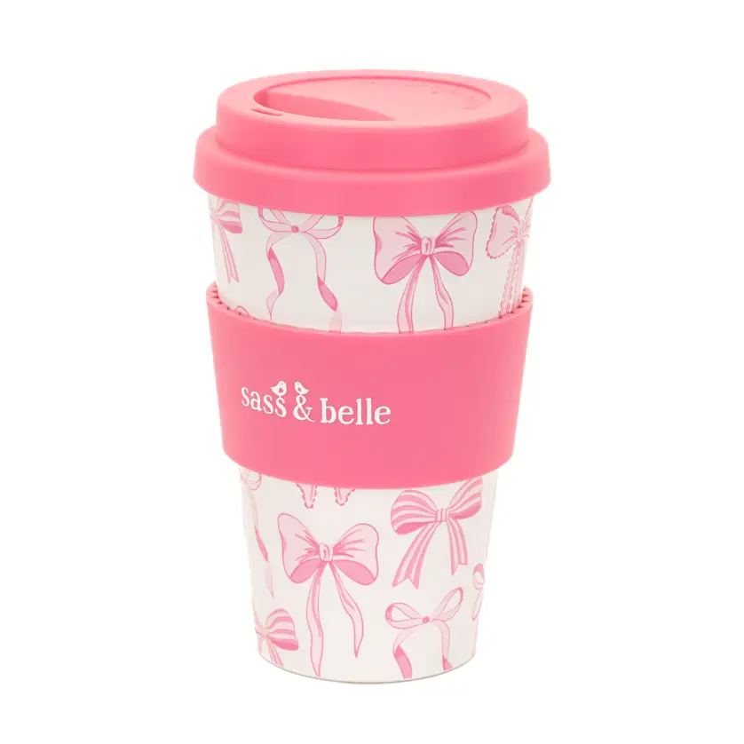 Bow Travel kaffe kop har et legende sløjfemotiv med isolerede vægge, der holder drikkevarer varme eller kolde under dine daglige eventyr.
