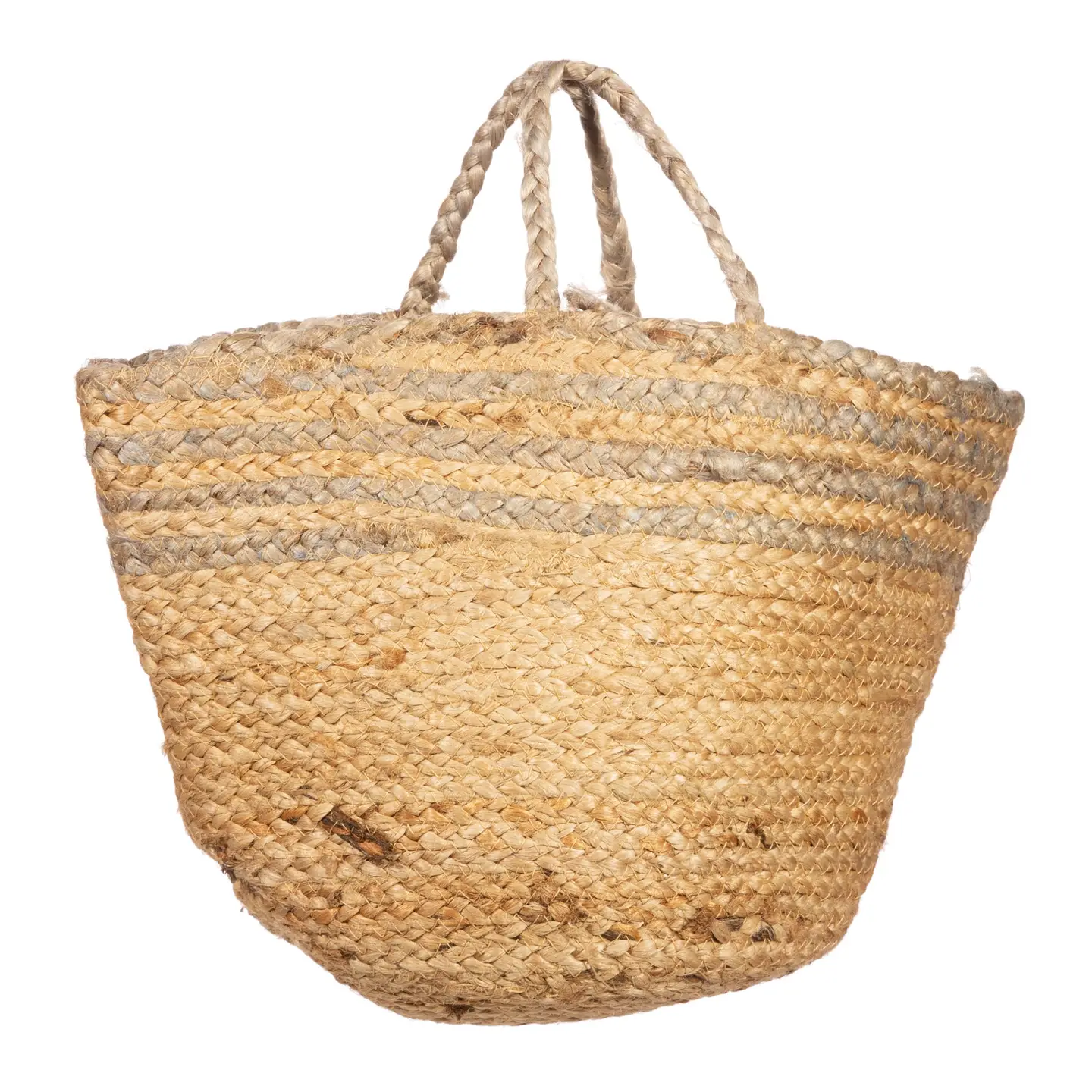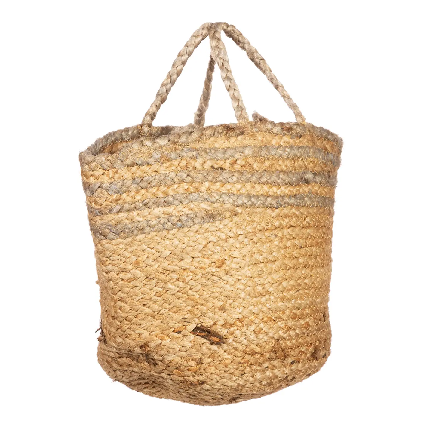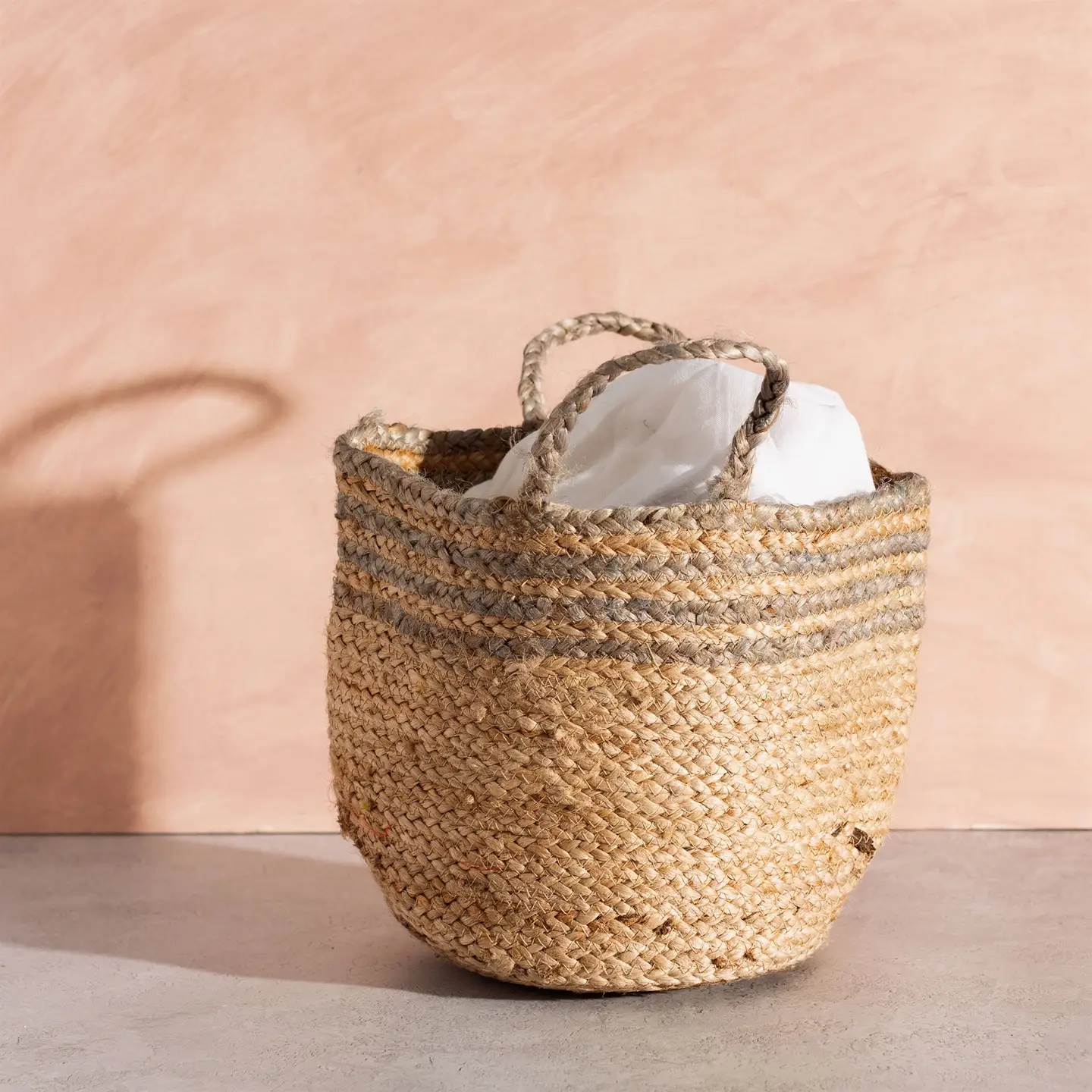 Lavet af jute for at skabe et spiralformet stribedesign. Vidunderlig til at organisere tæpper, håndklæder og andre ting i hjemmet.