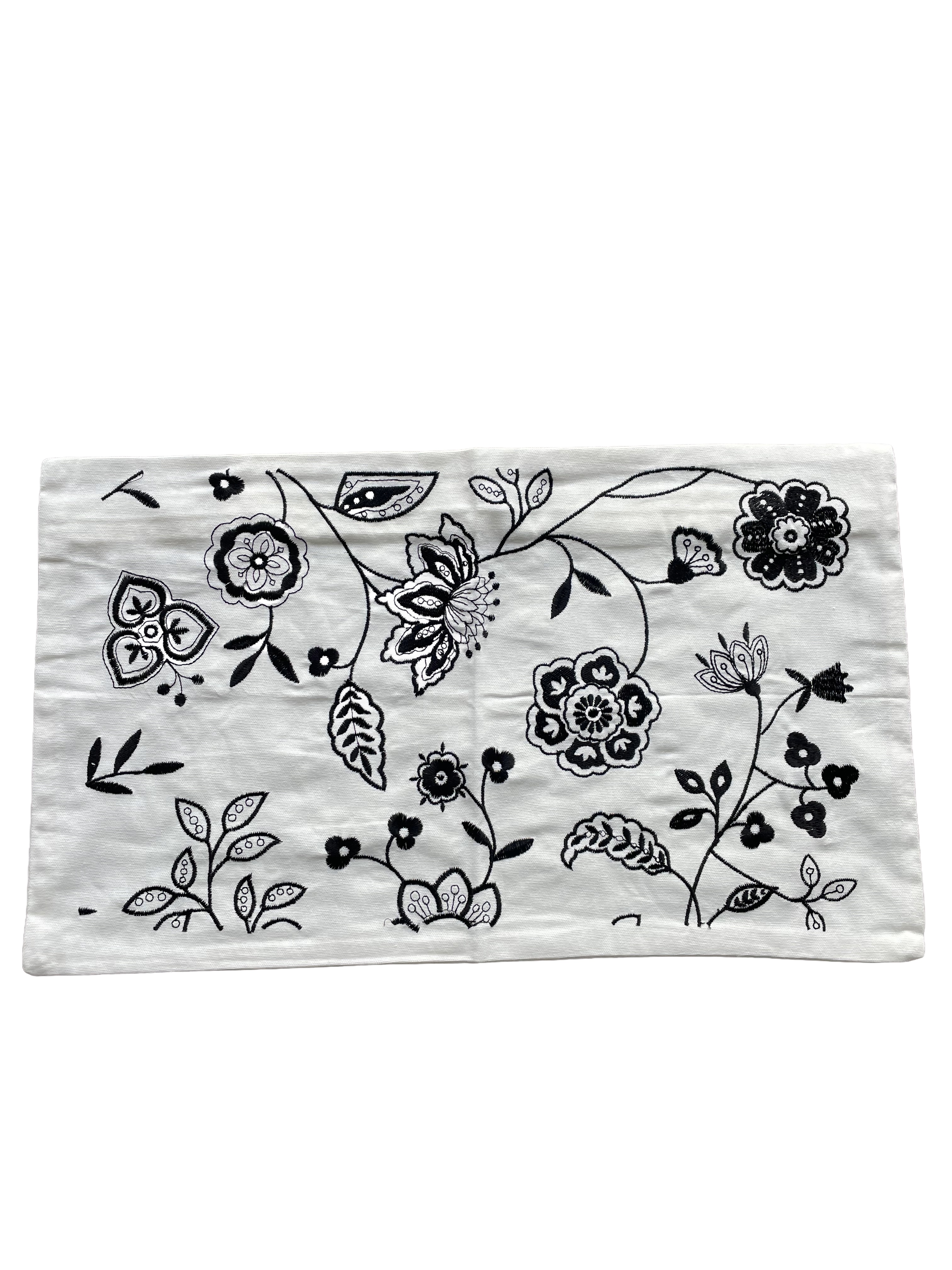 Blomstret pudebetręk hvid/sort