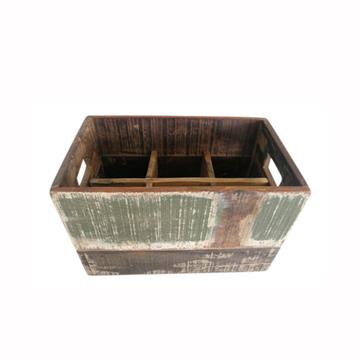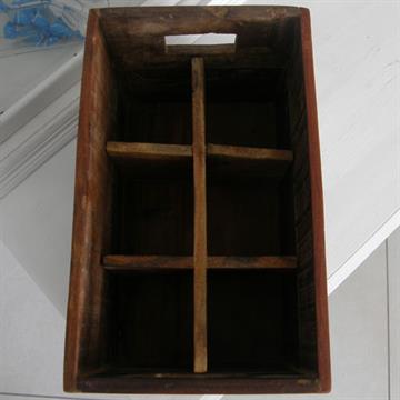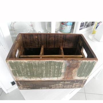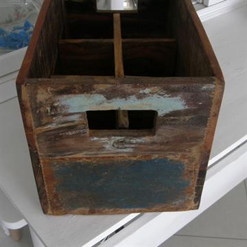 Fantastisk trækasse fremstillet af affaldstræ. Der medfølger en indsats, der giver mulighed for at bruge den f.eks. opbevaring af flasker m.m.