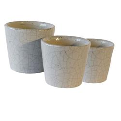 Sæt bestående af 3 flotte urtepotter, der vil pynte i en hver vindueskarm. Lille : Diameter 11 - Højde 9cm Mellem : Diameter 13 cm - Højde 10cm Stor : Diameter 16 cm - Højde 13cm