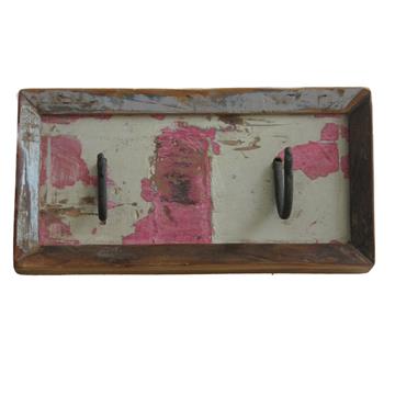 Denne knagerække er lavet af tidligere dørpaneler. Det gør hver enkelt knage forskellige og unik.